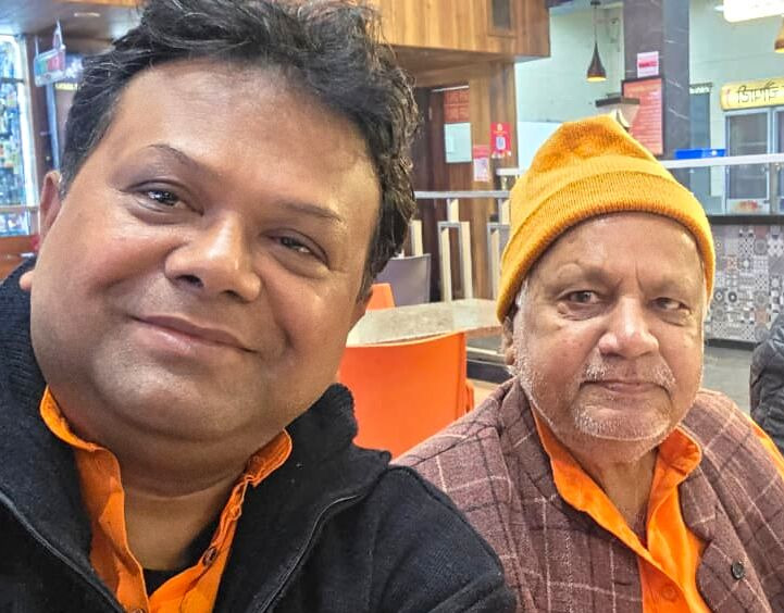 Swami Abhyanandaji has been with us from the last 26 years. He came in contact with us almost from the time we are in Varanasi. His wife was an ardent devotee of Sri Bhagavan. She died after a prolonged illness and since then Abhyanandaji started living with us. He was given Sanyas by Sri Bhagavan in 2002. He is one of the poineers of the ashram in Varanasi. The transformation of the ashram from a remnant to well furnished building is because of his tireless hard work. We have seen extreme poverty together and our relationship grew stronger with more and more challenges. Today He is around 83 years but strong enough to support everybody who visits the ashram.