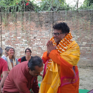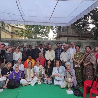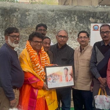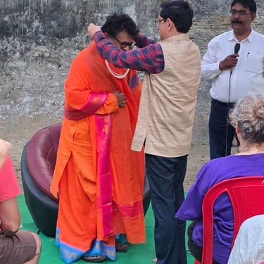 On February 21th, charitable group 'Bandhu' felicitated International Vedanta Society for its activities and service in Varanasi. The festivities were held in the late afternoon in the garden of our new center in Ravindrapuri. They were preceded by a Satsang on Vedanta by Swami Probuddhananda Puuri.