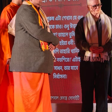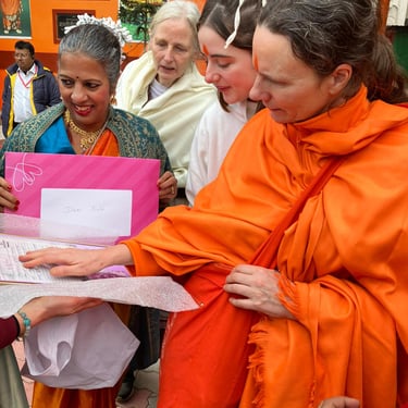Among the highlights of the celebration were the talks delivered by various speakers who shared their insights and personal experiences with Bhagavan. Their words resonated deeply, inspiring attendees to reflect on their own journeys in spirituality. Listening to the experiences of others allowed many to connect, fostering new friendships and strengthening existing bonds. The atmosphere during these speeches was charged with emotion and devotion, echoing the timeless teachings of Bhagavan. Another highlight was also the initiation of two of Bhagavan's devotees as sannyasins from the Netherlands and United Kingdom respectively, who also held heartfelt speeches about entering this new life fase.