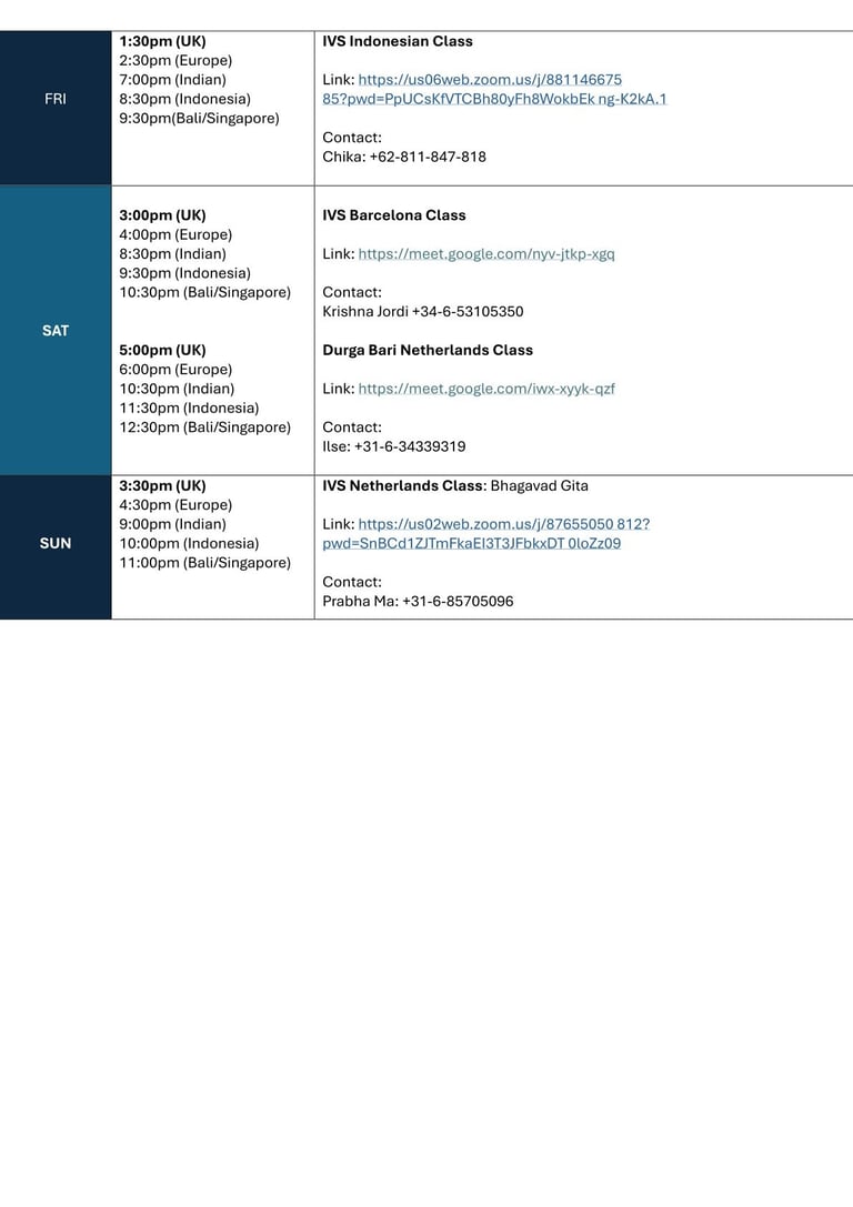 Every day there are classes in Varanasi as well as online for all audiences, brought to you by Swami Probuddhananda Puri. If you want to join for the first time, please inform our contact mentioned per class. For more information, see our program below, or download the program here: