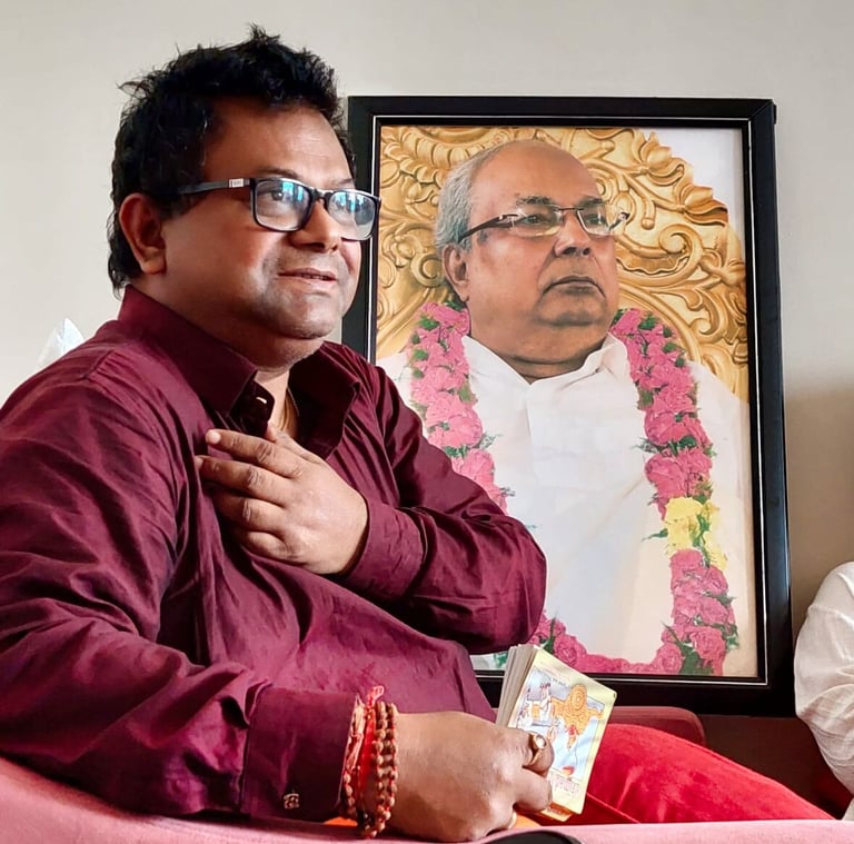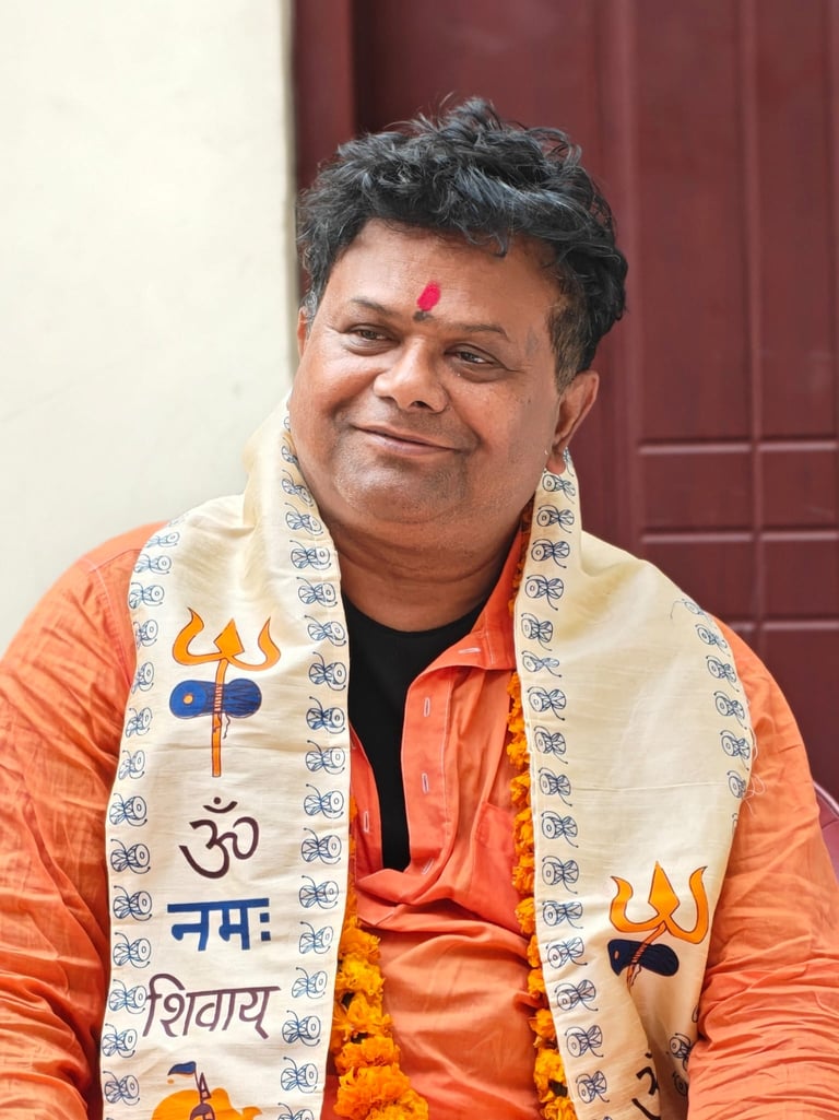 Swami Probuddhananda was born on December 5th, 1971. He grew up in Maligaon, Guwahati, in the Railway Quarters - just one house away from Bhagavan, whom he called “Uncle” as a child. During his teenage years, he worked with Bhagavan in theatre and often played the role of His son- pre-empting the future of a life with Bhagavan. Around the age of 17, Swamiji felt a growing attraction to Bhagavan after hearing his future Master speak about the Buddha and Swami Vivekananda. He began visiting Bhagavan with his friends to hear more about Vedanta, and started hosting Bhagavan’s talks at his family home, where everyone was welcome. He became more and more drawn to Bhagavan and to the message of truth, knowledge, non-duality, and love found in Advaita Vedanta. Bhagavan soon became the center and source of Swamiji's life.
