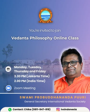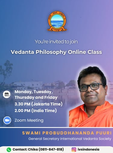In the IVS Indonesia classes Swami Probuddhananda mainly focusses on meditation, it's technique and practice. Join us to travel to the depts within yourself to find your true nature.