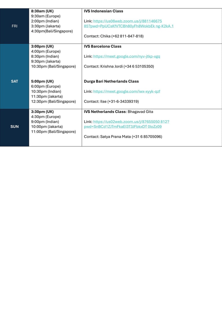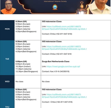 Every day there are classes in Varanasi as well as online for all audiences, brought to you by Swami Probuddhananda Puri. If you want to join for the first time, please inform our contact mentioned per class. For more information, see our program below, or download the program here: