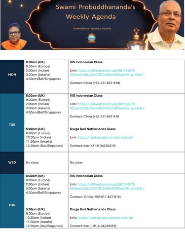Swami Probuddhananda's profound and sincere knowledge of the Vedantic Scriptures and his practical and thorough instructions for meditation are brought to you in his online classes which are held many times a week from different locations and times in Asia and Europe.