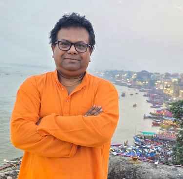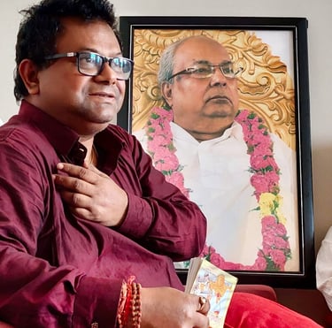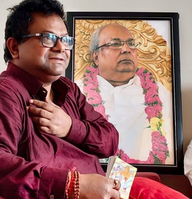 Swami Probuddhananda Puri was born on December 5th, 1971. He grew up in Maligaon, Guwahati, in the Railway Quarters - just one house away from Bhagavan, whom he called “Uncle” as a child. During his teenage years, he worked with Bhagavan in theatre and often played the role of His son- pre-empting the future of a life with Bhagavan. Around the age of 17, Swamiji felt a growing attraction to Bhagavan after hearing his future Master speak about the Buddha and Swami Vivekananda. He began visiting Bhagavan with his friends to hear more about Vedanta, and started hosting Bhagavan’s talks at his family home, where everyone was welcome. He became more and more drawn to Bhagavan and to the message of truth, knowledge, non-duality, and love found in Advaita Vedanta. Bhagavan soon became the center and source of Swamiji's life.