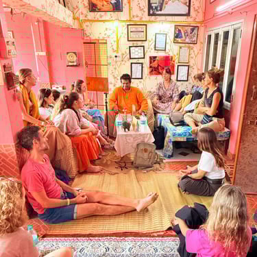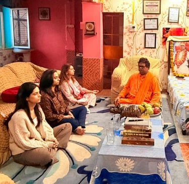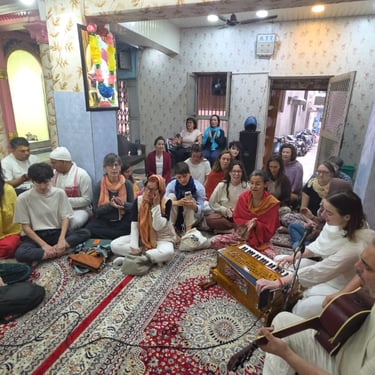 Near the banks of Ganga, you will find our ashram, where, every day at 10 a.m. and 6 p.m., you can join the singing of vedic mantra's .